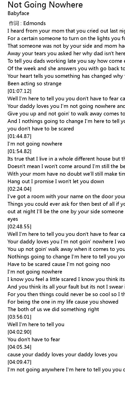 [03:00.51] Your daddy loves you I'm not goin' nowhere I wont give