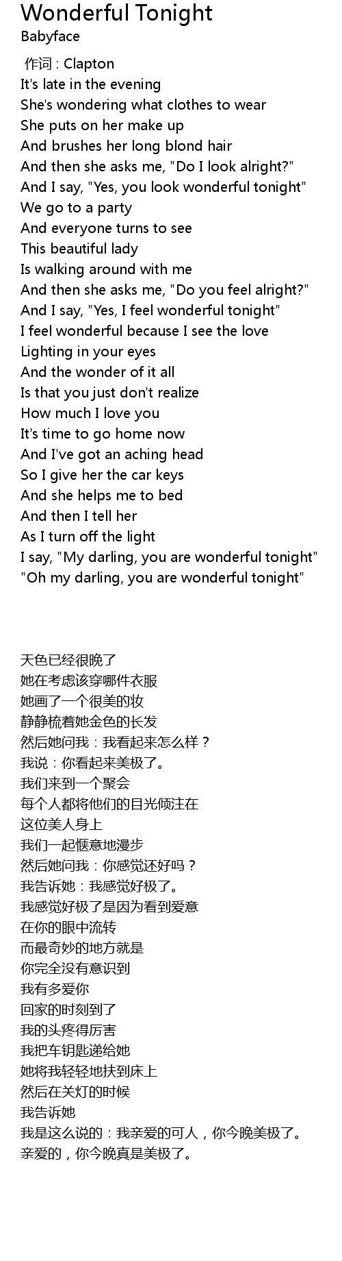 | [00:49.300] | And I say, " Yes, you look wonderful tonight" |