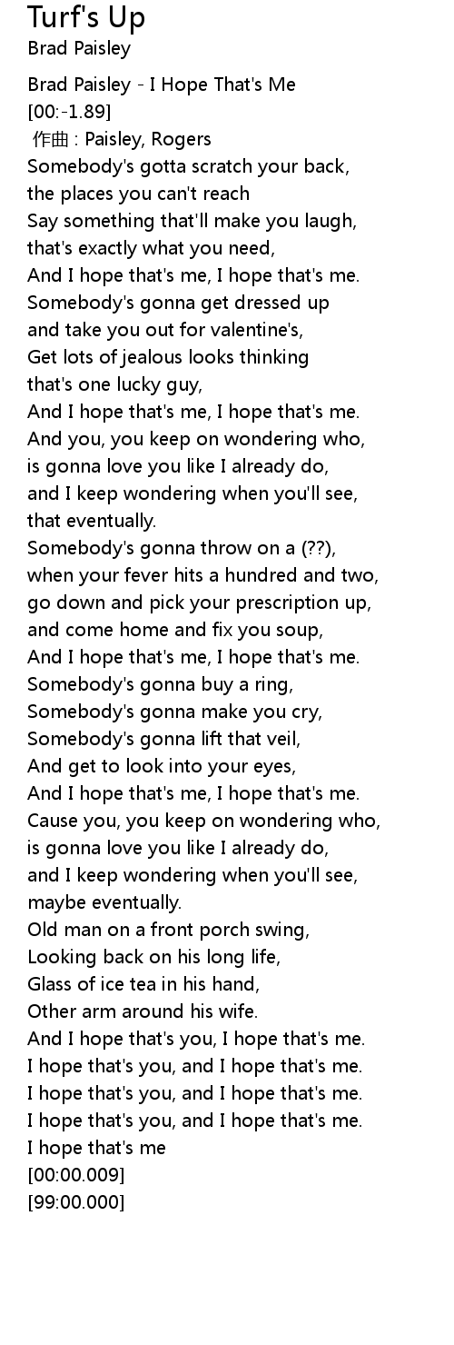 | [00:-2.12] | Brad Paisley I Hope That' s Me |