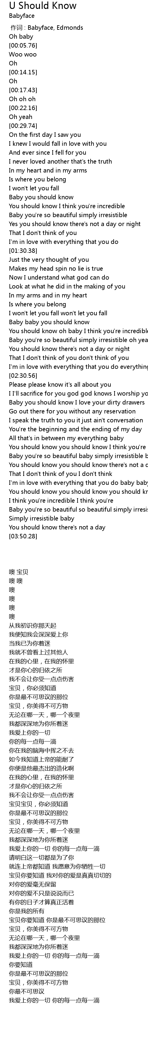 | [03:30.87] | You should know you should know you should know |