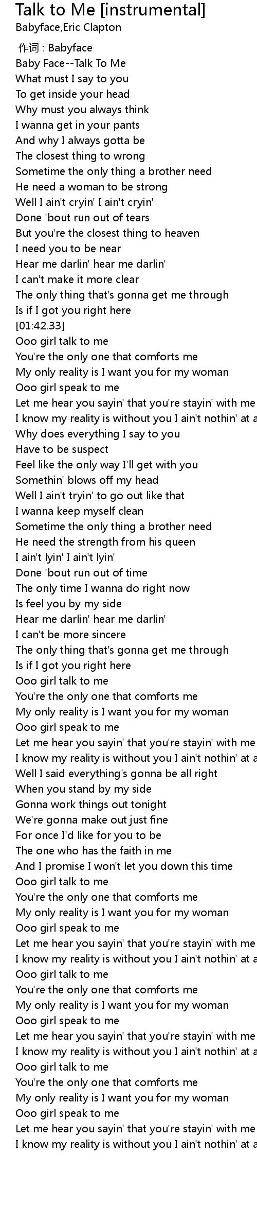 | [00:34.55] | Baby FaceTalk To Me |