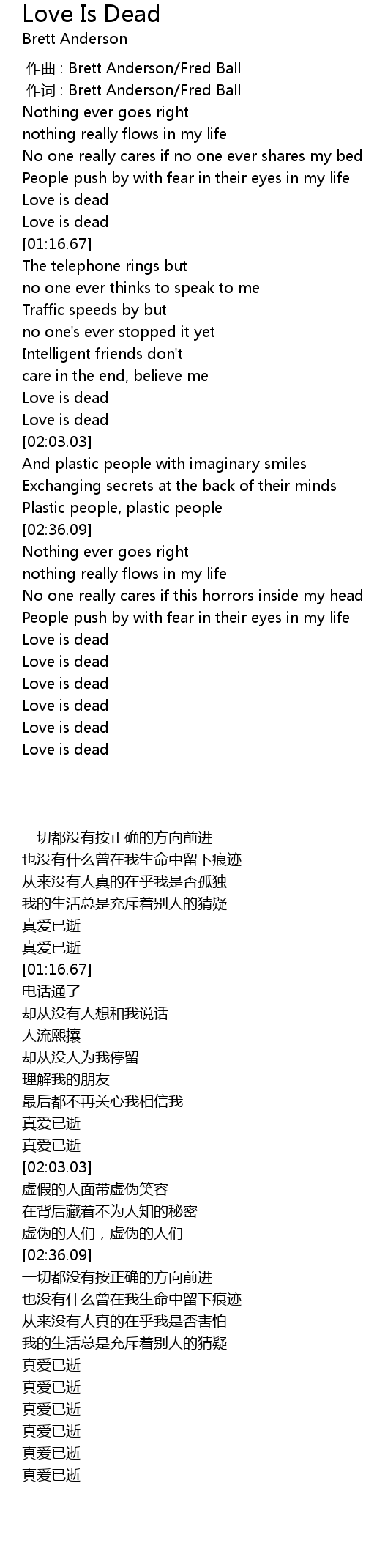 | [00:01.00] | zuò cí : Brett Anderson Fred Ball |