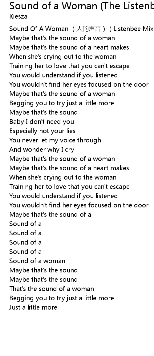 | [00:00.00] | Sound Of A Woman (人的声音)(Listenbee Mix )-Kiesza |