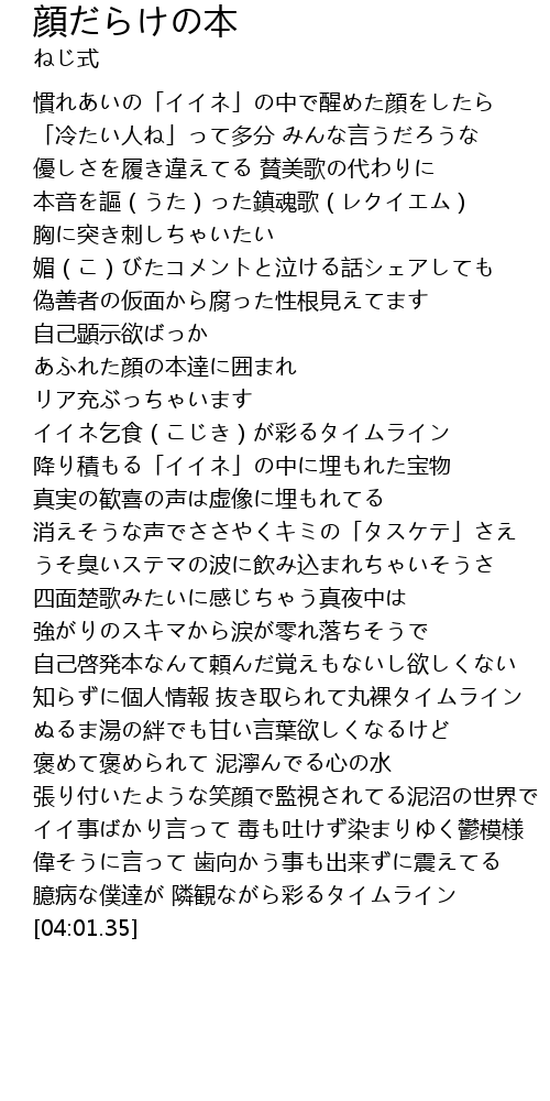 | [01:32.20] | イイネ乞食(こじき)が彩るタイムライン |