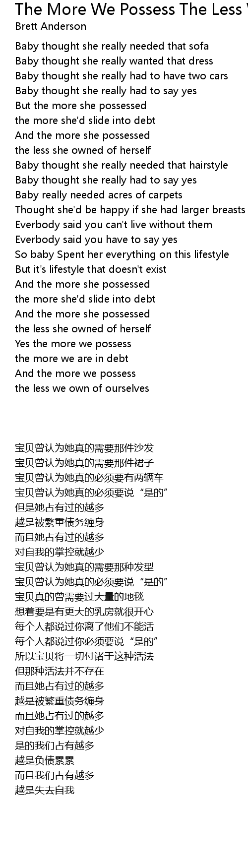 And the more we possess |