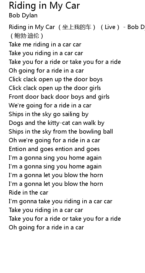 | [00:00.630] | Riding in My Car zuò shàng wǒ de chē Live Bob Dylan bào bó dí lún |