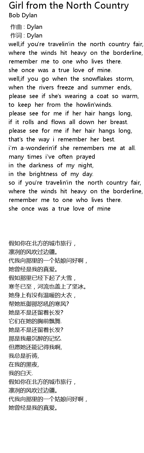 | [00:08.820] | well,if you're travelin'in the north country fair, |