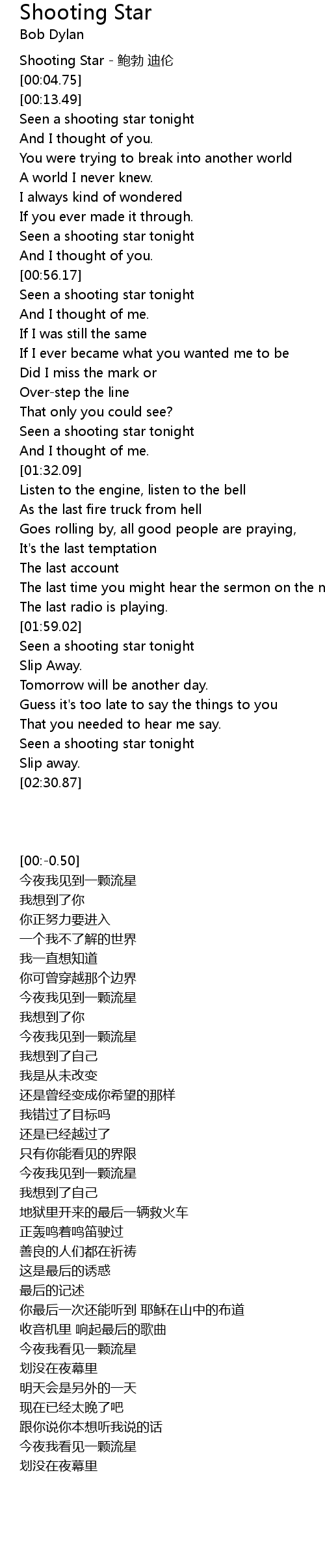 | [00:-0.50] | Shooting Star - 鲍勃 迪伦 |