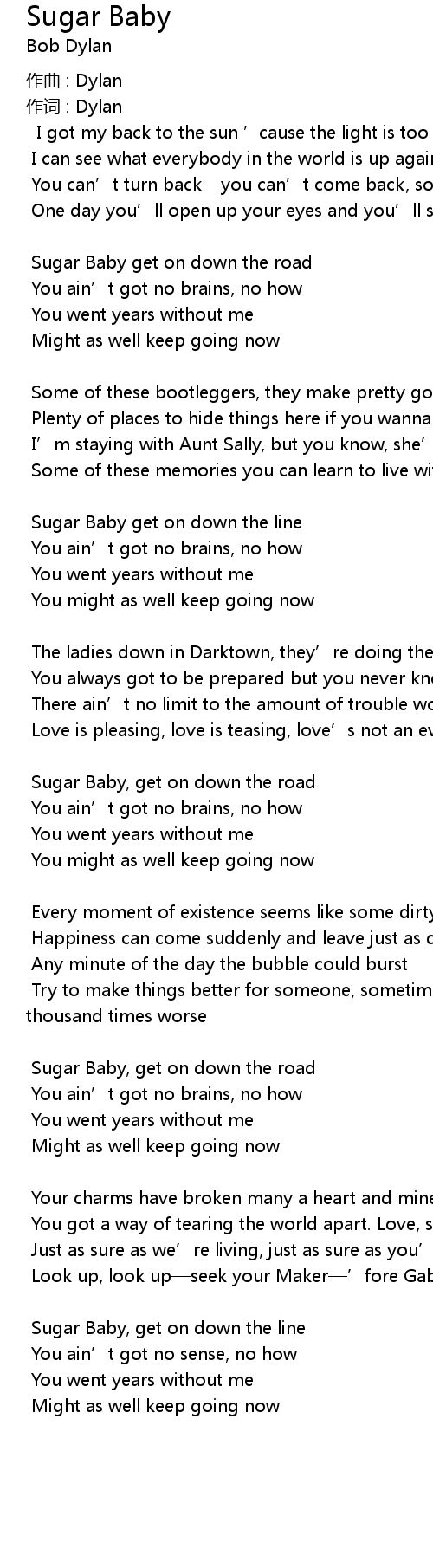 | Sugar Baby get on down the road | |