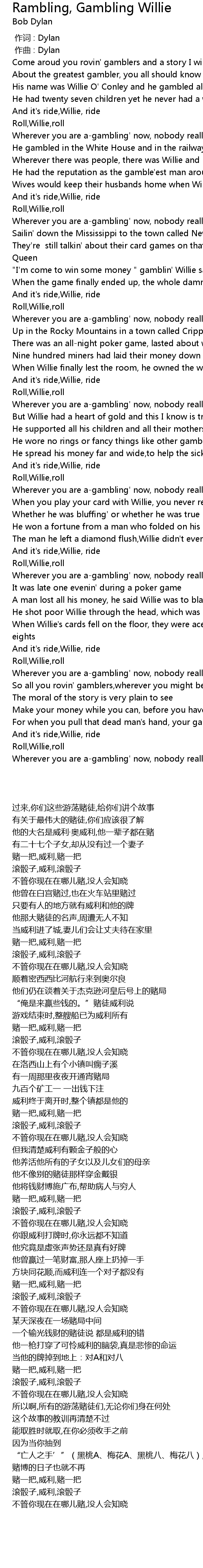 | [01:07.23] | "I'm come to win some money " gamblin' Willie says |