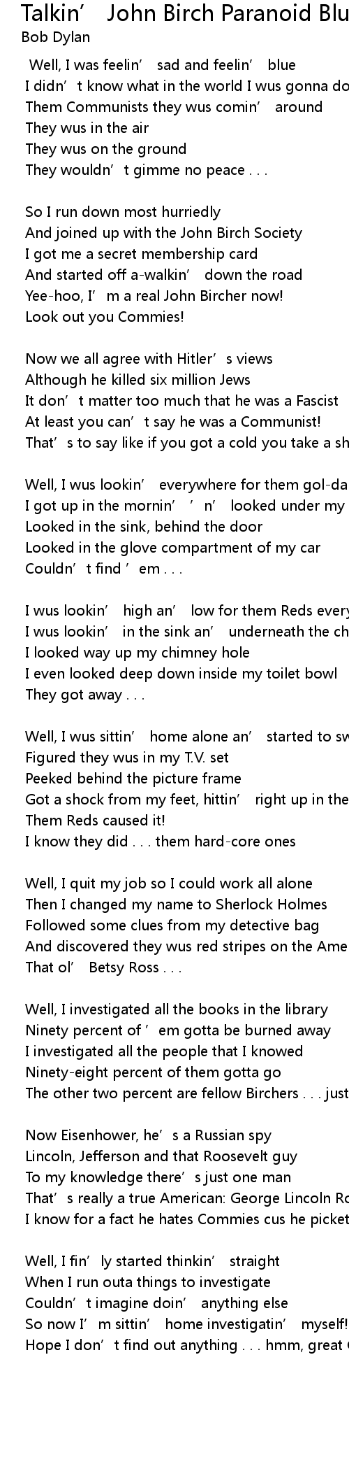| I know for a fact he hates Commies cus he picketed the movie Exodus | |