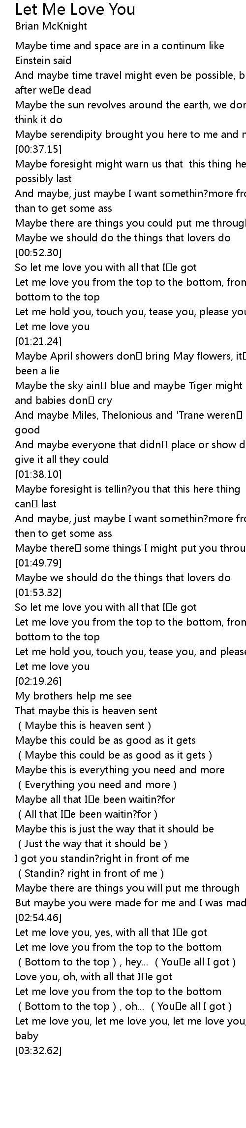 | [03:28.53] | Let me love you, let me love you, let me love you, |