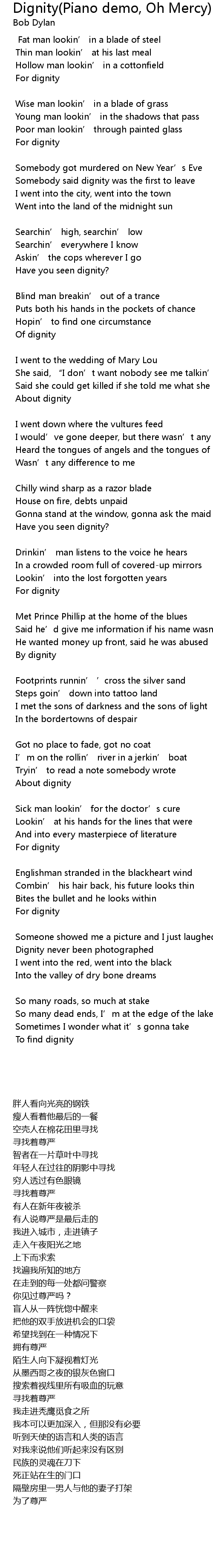 | Song | Dignity(Piano demo, Oh Mercy) |