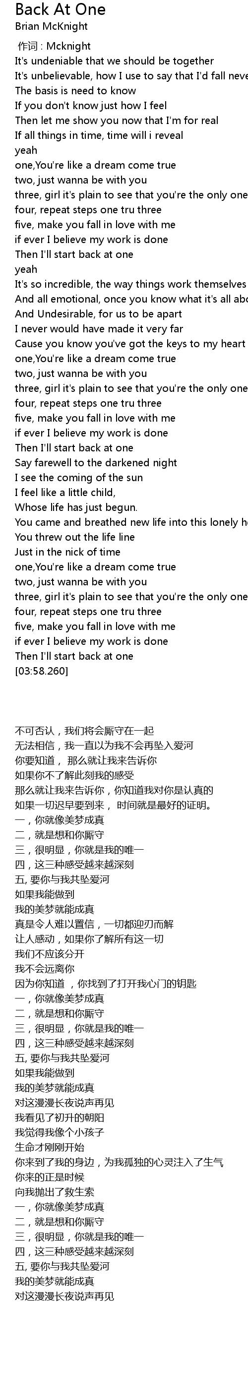 | [01:23.130] | three, girl it' s plain to see that you' re the only one for me |