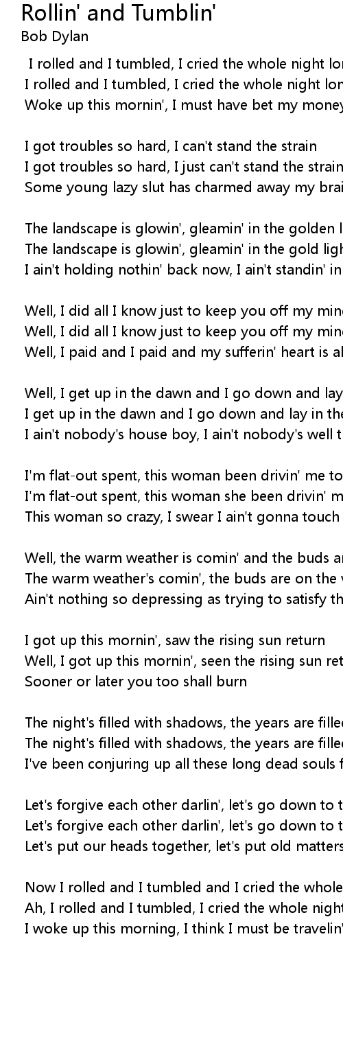 Now I rolled and I tumbled and I cried the whole night long |