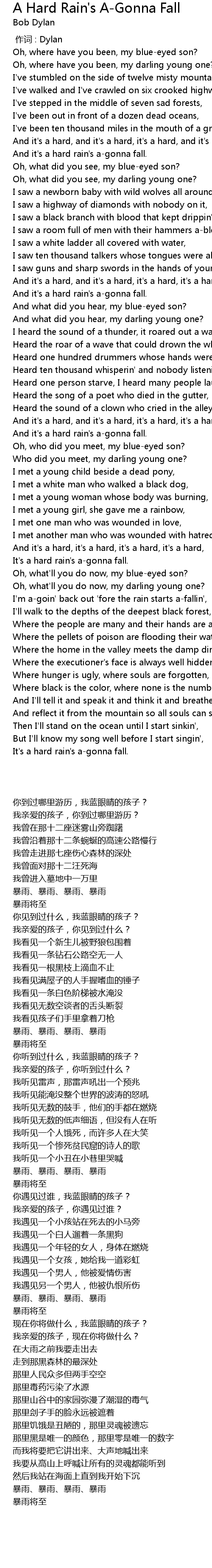 | [01:01.11] | And it's a hard rain's a-gonna fall. |