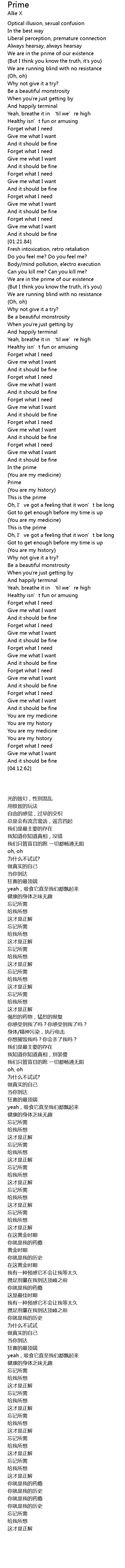 | [00:27.91] | We are in the prime of our existence |