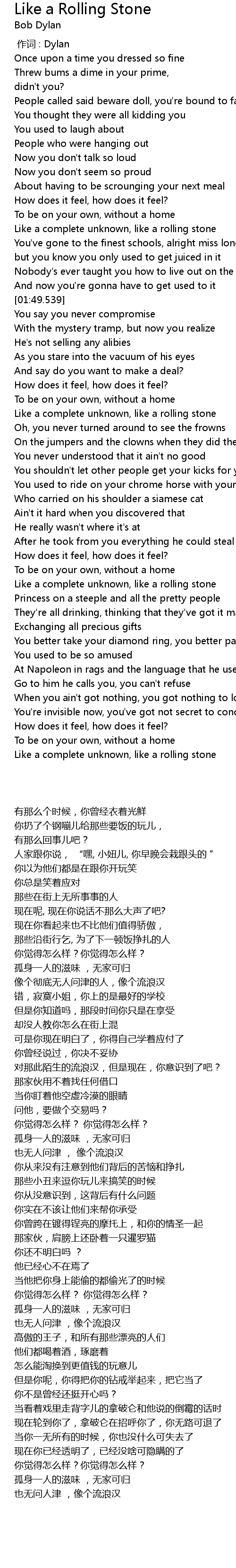 | [02:42.740] | Like a complete unknown, like a rolling stone |