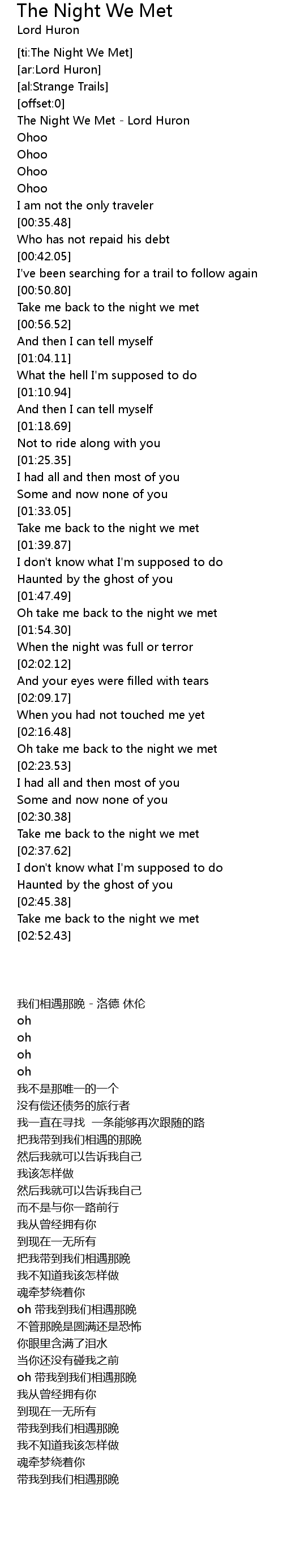 [ti:The Night We Met] |