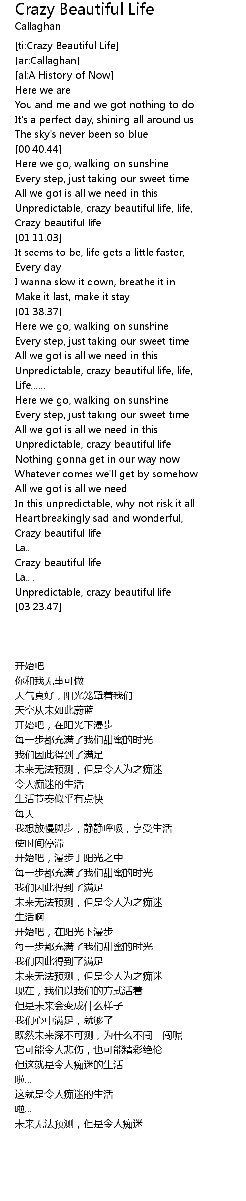 [ti:Crazy Beautiful Life] |