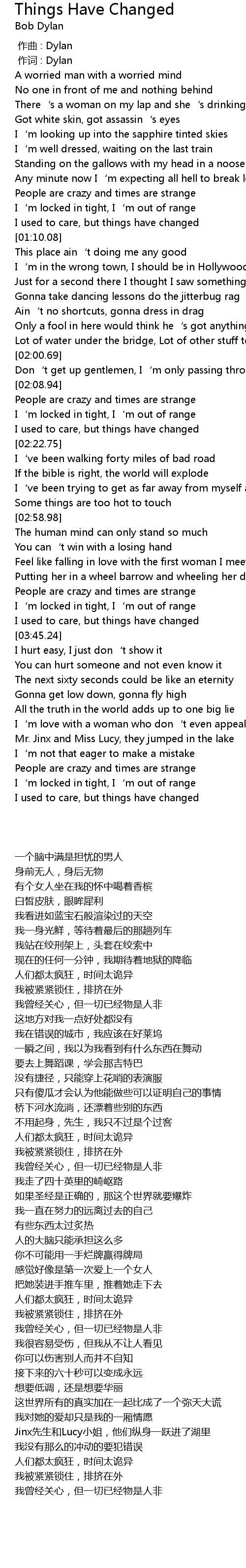 | [02:10.25] | People are crazy and times are strange |
