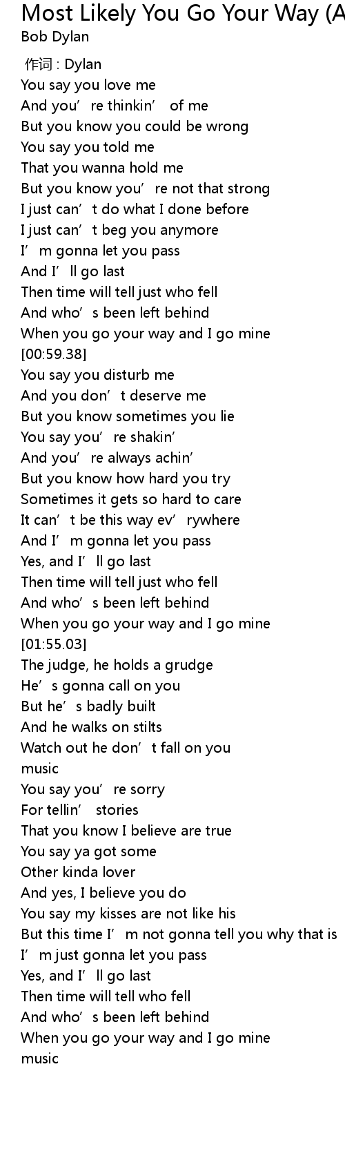 | Song | Most Likely You Go Your Way (And I'll Go Mine) |