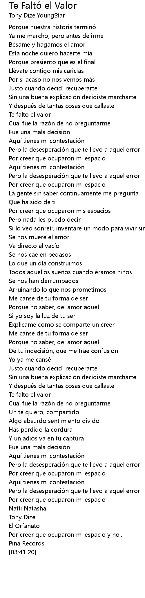 | [02:40.05] | Te faltó el valor |
