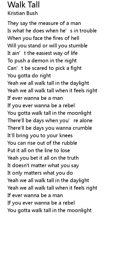 | Yeah we all walk tall when it feels right | |