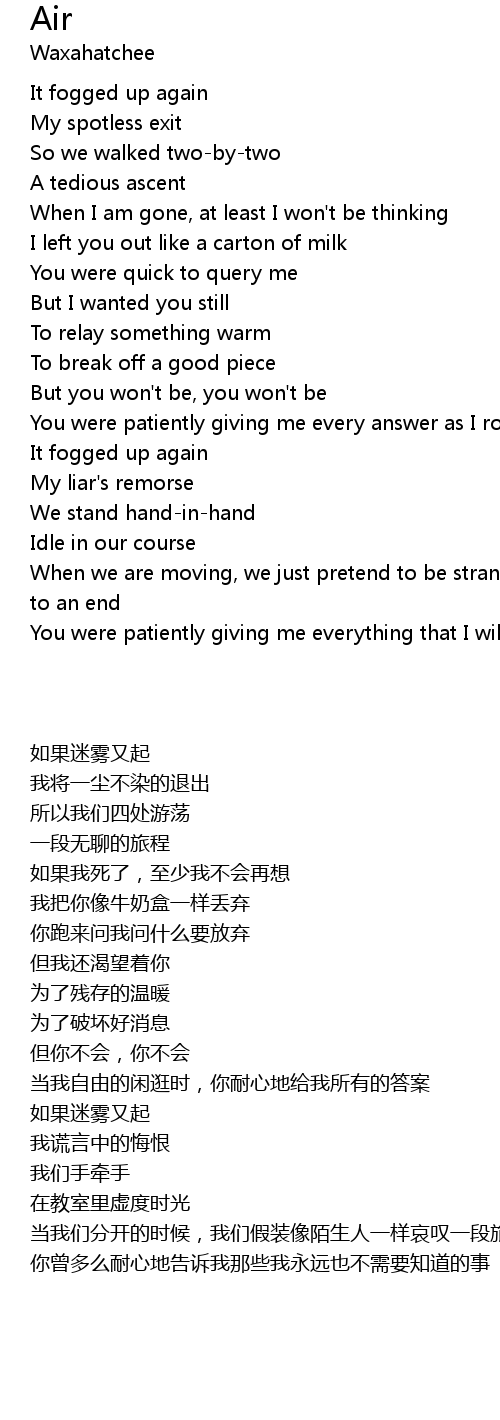 You were patiently giving me everything that I will never need |