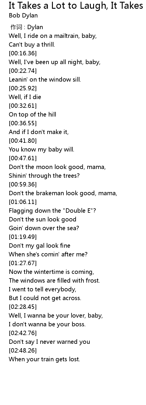 | [00:11.86] | Well, I ride on a mailtrain, baby, |