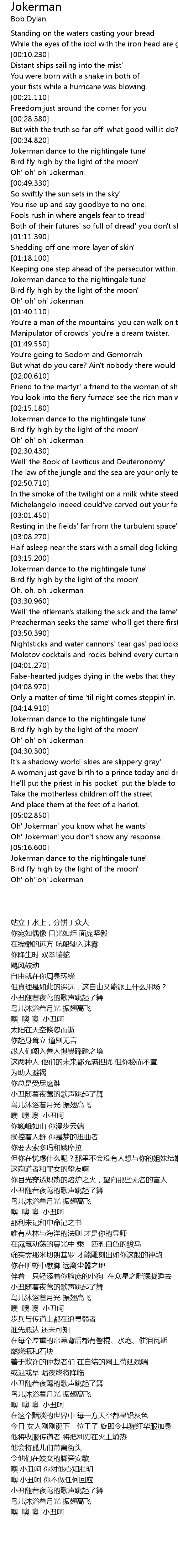 | [05:17.410] | Jokerman dance to the nightingale tune' |