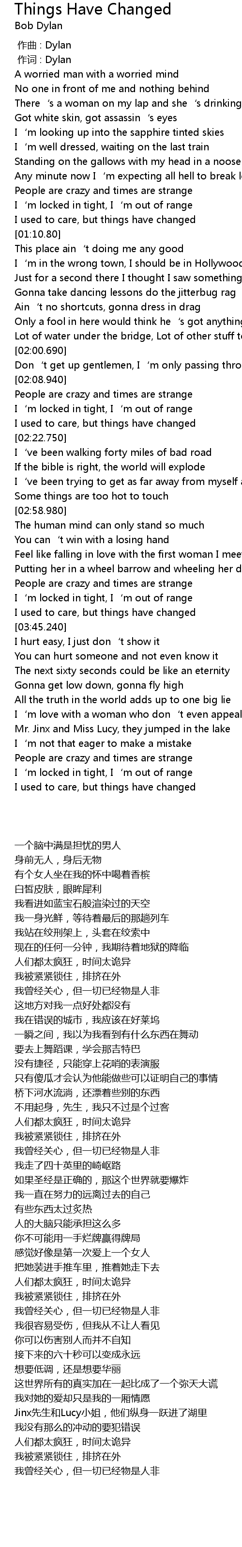 | [00:54.540] | People are crazy and times are strange |