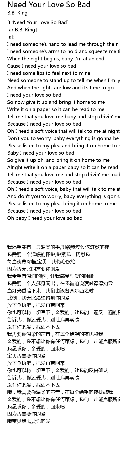 [ti:Need Your Love So Bad] |