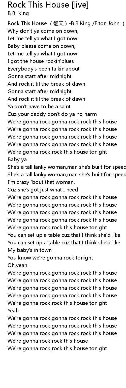 | [00:00.00] | Rock This House fān tiān B. B. King Elton John ěr dùn yuē hàn |