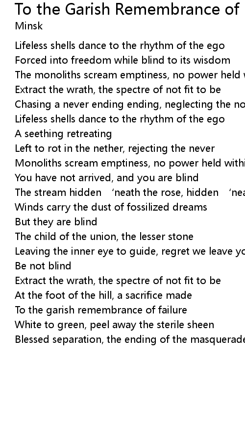 | Leaving the inner eye to guide, regret we leave you to die | |