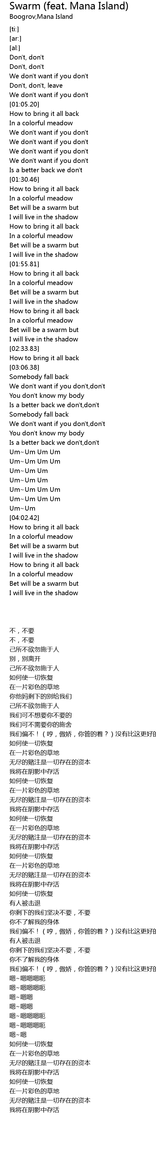 | [01:36.99] | Bet will be a swarm but |