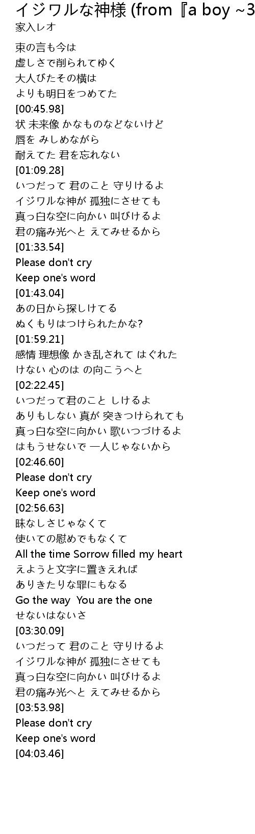 | [03:36.60] | イジワルな神が 孤独にさせても |