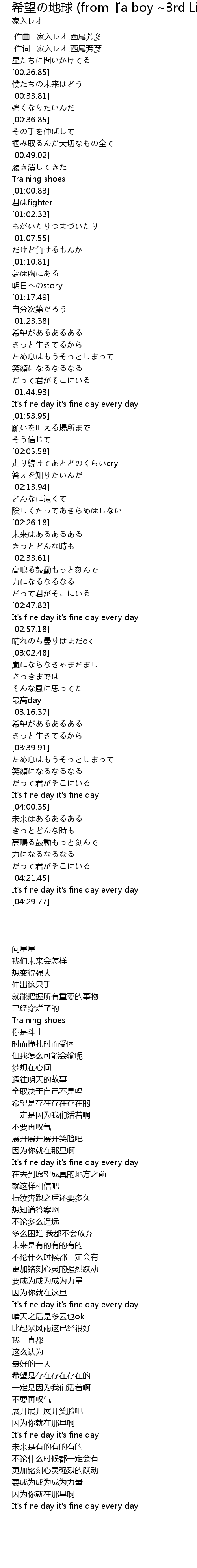 | [00:01.00] | 作词 : 家入レオ,西尾芳彦 |