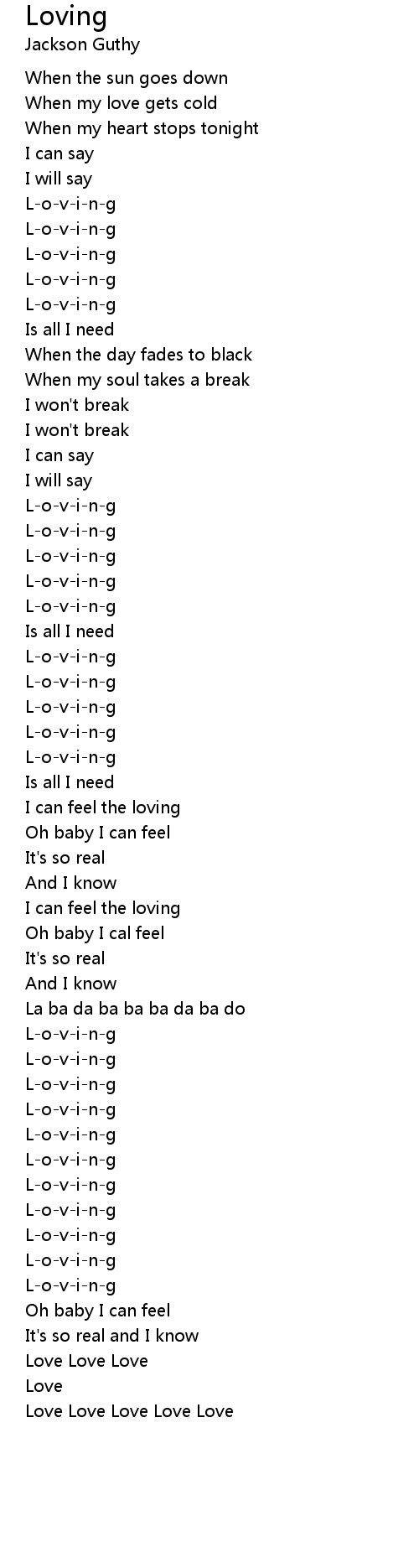 I can feel the loving |
