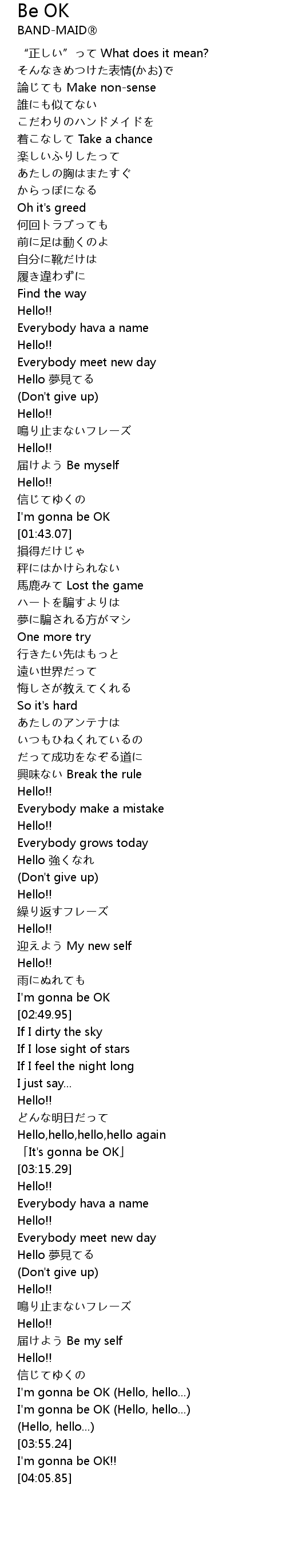 | [03:39.64] | I'm gonna be OK (Hello, hello...) |