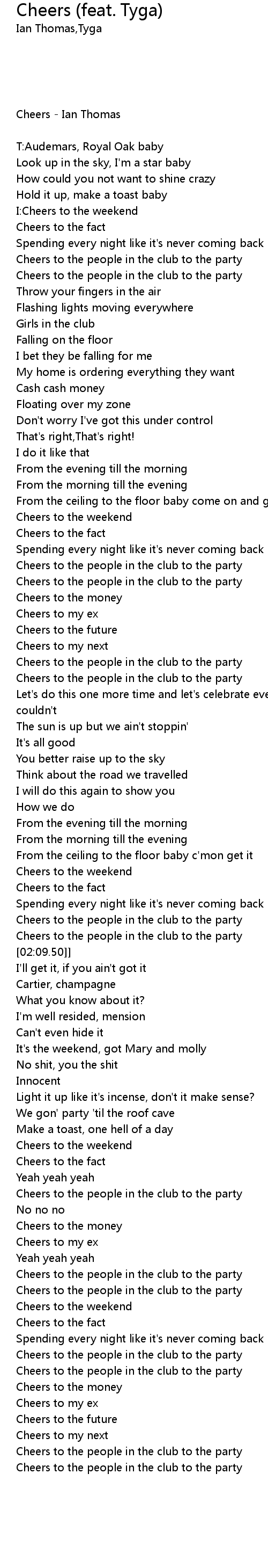 | [02:59.48] | Cheers to the people in the club to the party |