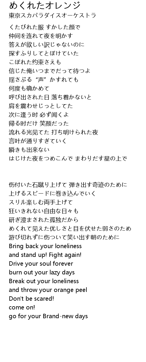| Song | めくれたオレンジ |