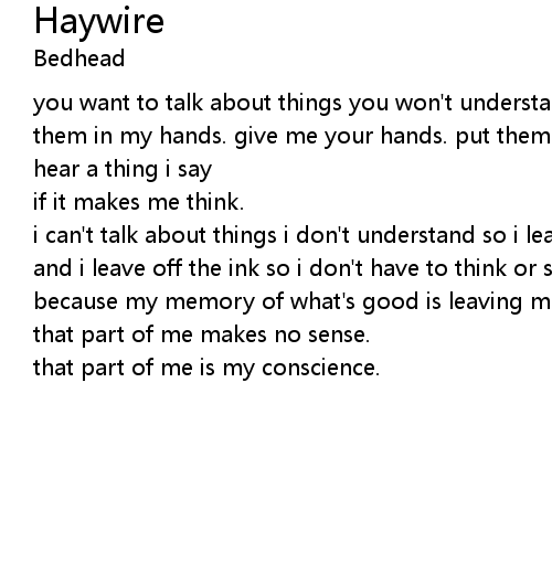 | you want to talk about things you won't understand? then give me your ears. put them in my hands. give me your hands. put them over my ears so i don't have to hear a thing i say | |