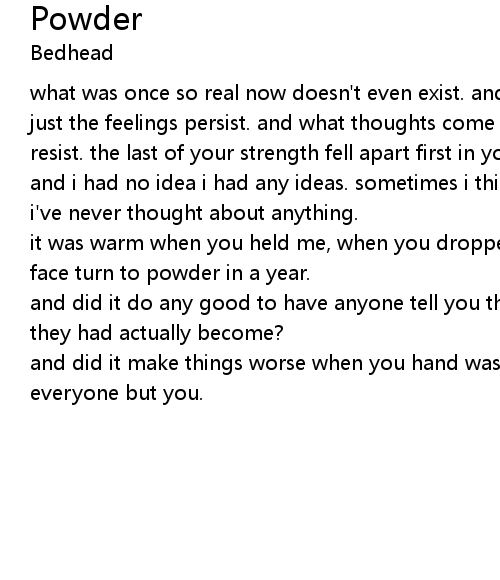 it was warm when you held me, when you dropped down beside me. but i saw your face turn to powder in a year. |