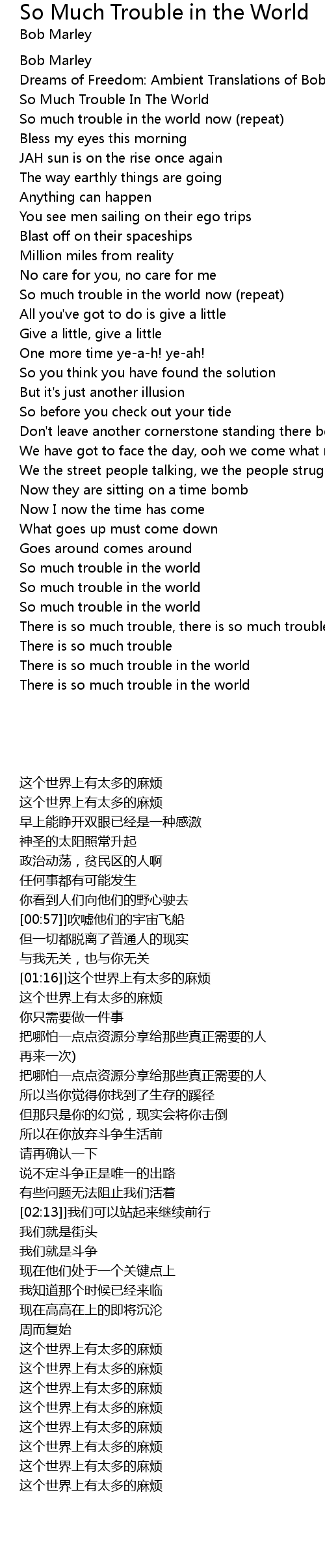 Song So Much Trouble in the World