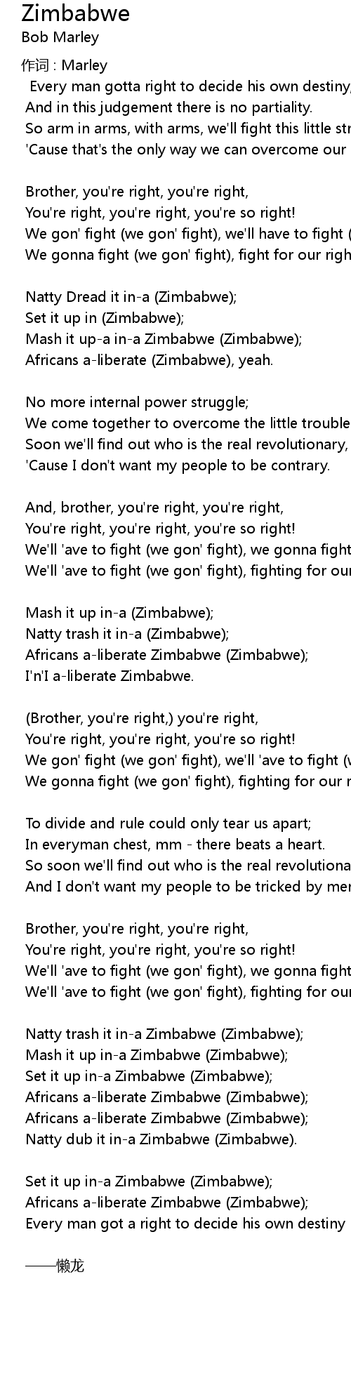 | Africans a-liberate (Zimbabwe), yeah. | |
