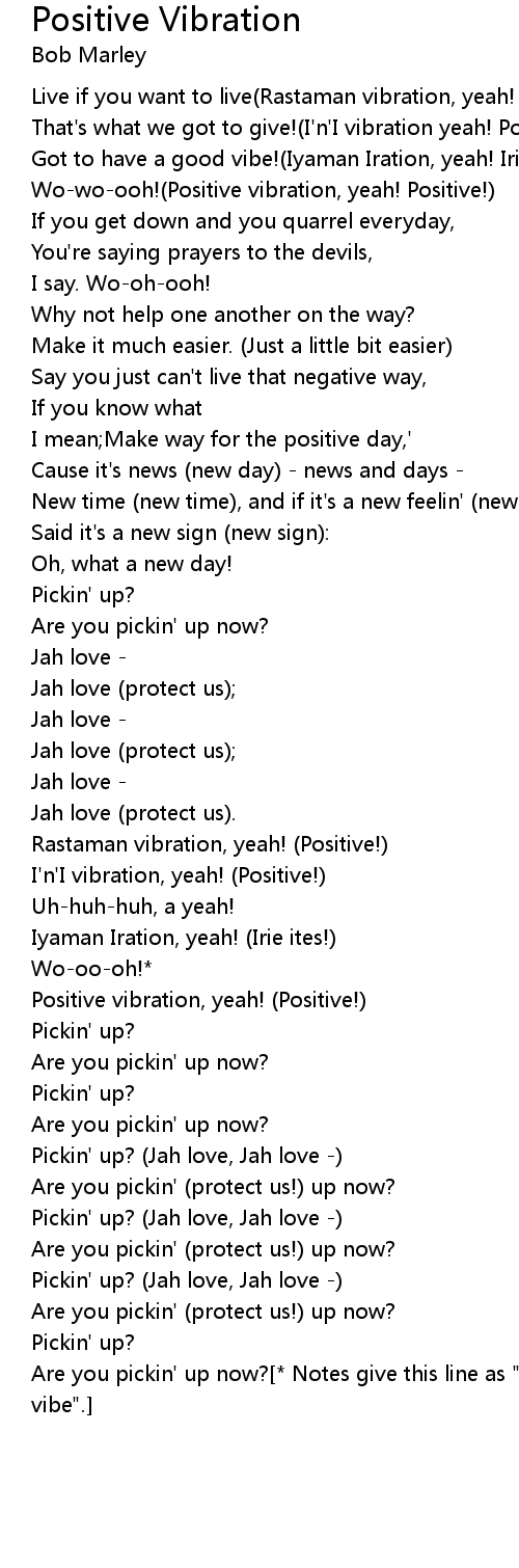 Wo-wo-ooh!(Positive vibration, yeah! Positive!) |