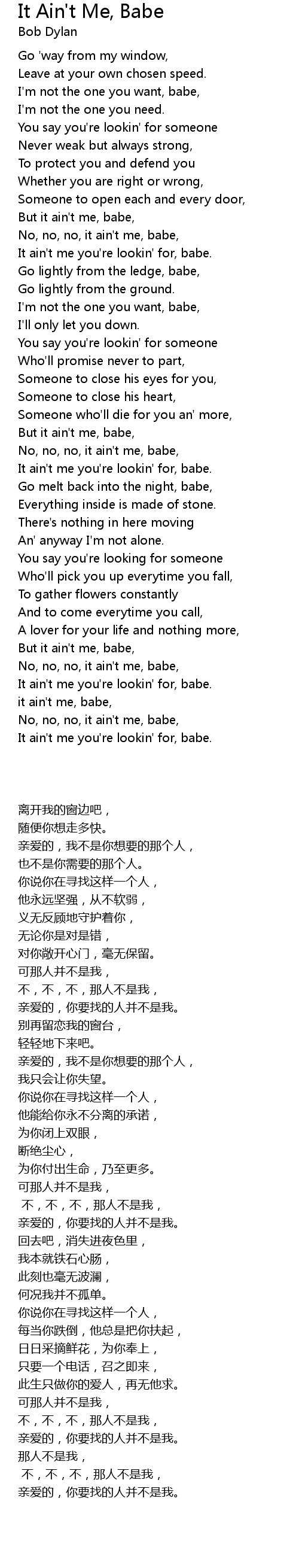 No, no, no, it ain't me, babe, |