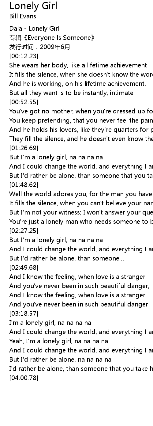 | [03:31.64] | Yeah, I' m a lonely girl, na na na na |