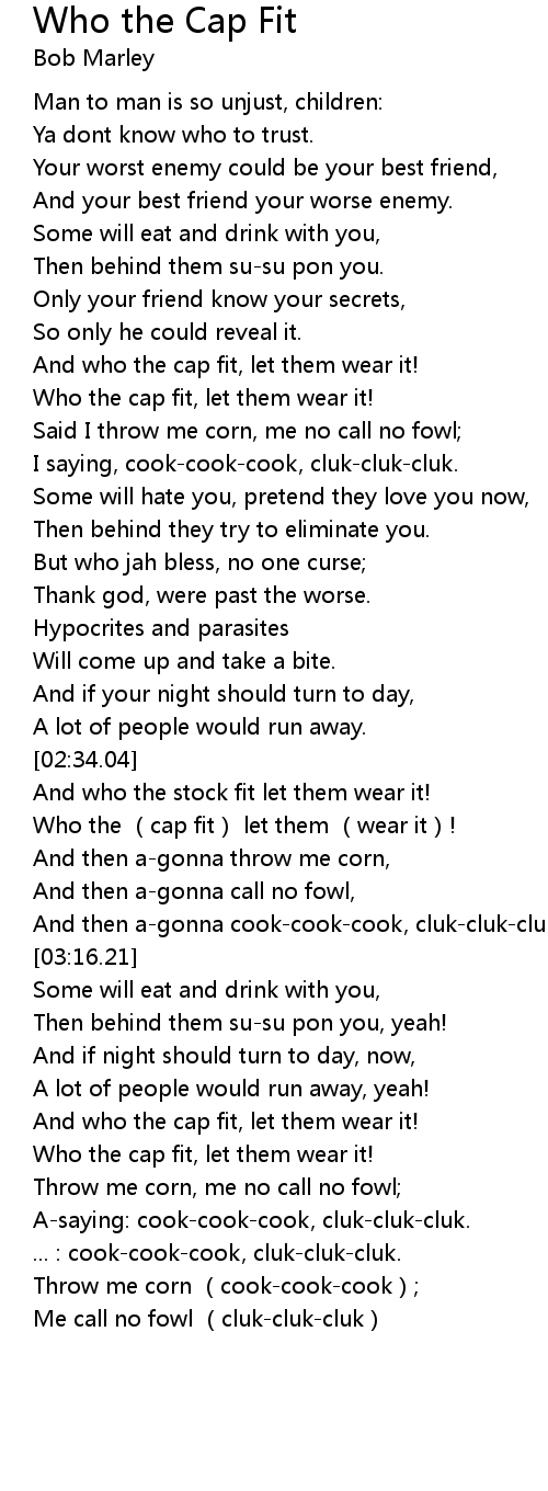 | [02:42.41] | Who the (cap fit) let them (wear it)! |